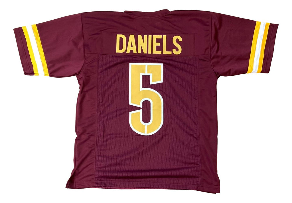 Featured is a Jayden Daniels custom football jersey. This jersey features professionally sewn letters and numbers and is size XL. This jersey has no team tags or emblems and is intended as a sports collectible.. SPECIFICATIONS Autographed By: Team: Washington Commanders Sport: Football Authentication: