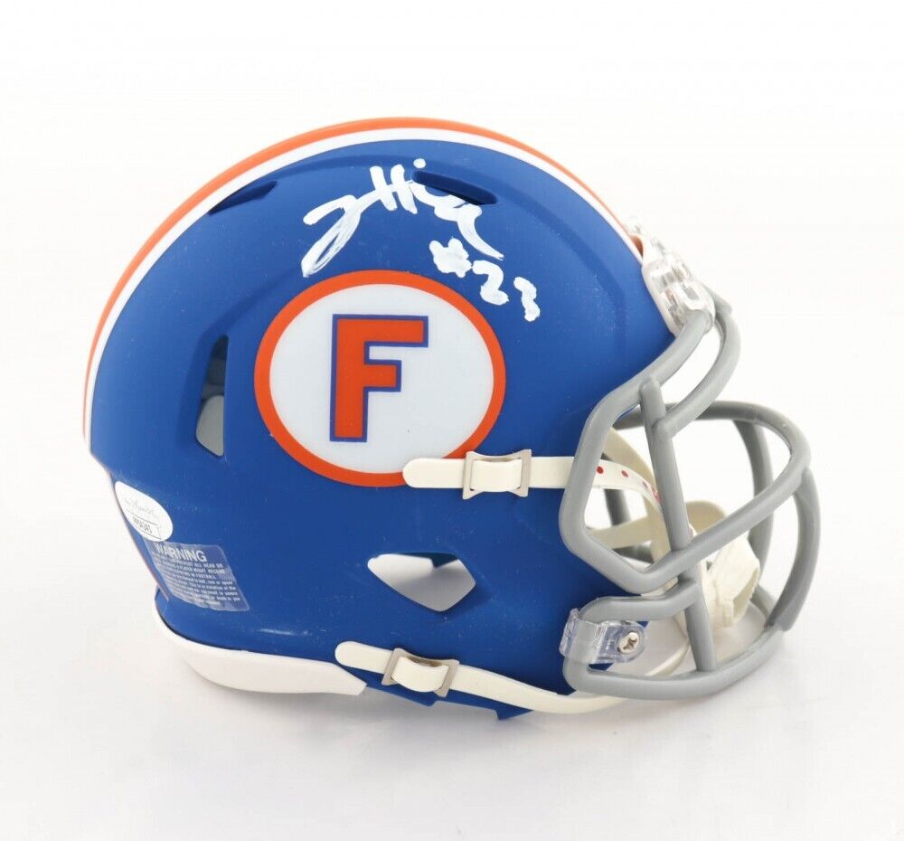 Riddell Florida Gators Speed mini helmet has been hand-signed by Jaydon Hill.The lot / autograph(s) includes an official James Spence Authentication (JSA) hologram and matching COA for authenticity purposes.Authentication: JSA COA