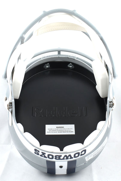 This is a Jaylon Smith of the Dallas Cowboys Autographed Riddell football full size Speed Replica helmet. This item has a Beckett Authentication, which comes with a numbered hologram and a COA for verification. You can view this item on the Beckett Authentication website. It was signed either at a public autograph appearance or a private signing. This is a stock photo of the item. Although you may not receive this exact item, the item you receive is virtually identical, brand new, and in great shape. *Autograph location may vary* This is a Jaylon Smith of the Dallas Cowboys Autographed Riddell football full size Speed Replica helmet. This item has a Beckett Authentication, which comes with a numbered hologram and a COA for verification. You can view this item on the Beckett Authentication website. It was signed either at a public autograph appearance or a private signing. This is a stock photo of the item. Although you may not receive this exact item, the item you receive is virtually identical, brand new, and in great shape. *Autograph location may vary*