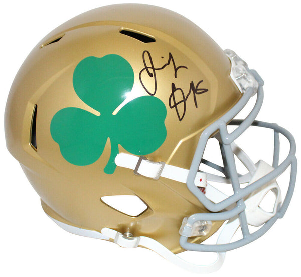 Jeremiah Owusu-Koramoah Signed Notre Dame F/S Shamrock Helmet BAS 32529