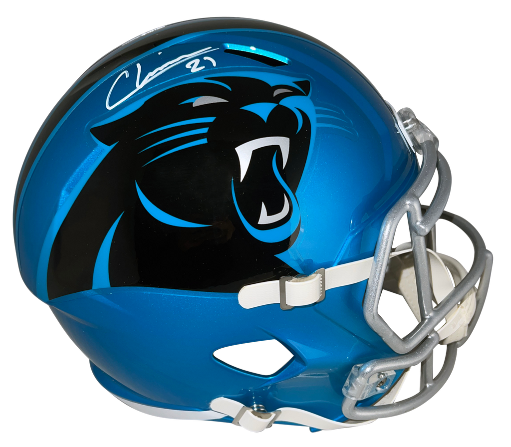 Jeremy Chinn, star safety for the Carolina Panthers, has hand signed this Panthers Riddell Speed Flash full-size replica helmet at a private signing. This item is authenticated by Beckett Authentication Services and was signed in the presence of one of their representatives. Their tamper-evident hologram featuring a QR code and serial number is on the item. The authenticity can be verified online by entering the serial number or scanning the QR code.Item pictured may not be the exact item you will receive. It will be similar quality, and we guarantee your satisfaction.