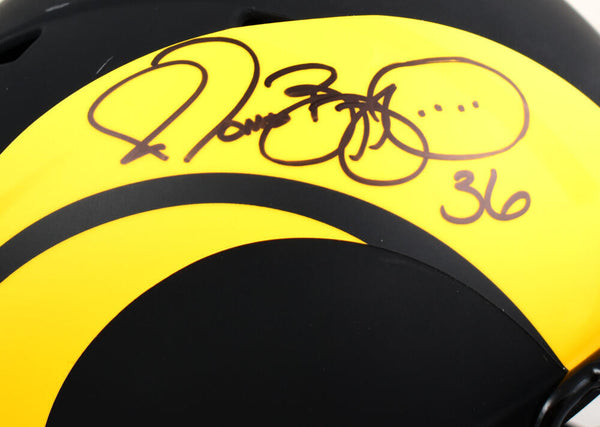 Jerome Bettis Autographed Rams Eclipse F/S Speed Helmet- Beckett W Hologram *Black This is a Jerome Bettis of the Los Angeles Rams hand autographed Riddell Football Eclipse Speed Replica helmet. This item has a Beckett Authentication, which comes with a numbered hologram and a QR code for verification. You can view this item on the Beckett website and it shows when and where the item was signed. It was signed either at a public autograph appearance or a private signing. This is a stock photo of the item. Although you may not receive this exact item, the item you receive is virtually identical, brand new, and in great shape.