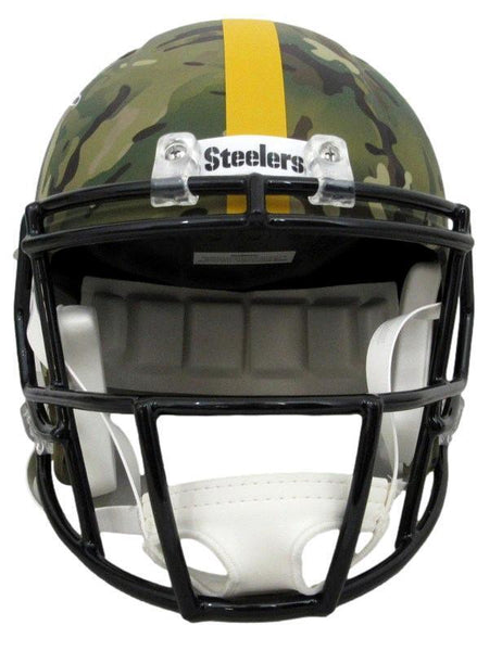 Jerome Bettis HOF Autographed Full Size Camo Replica Football Helmet Pittsburgh Steelers. This helmet is authenticated by BAS/Beckett and includes their Tamper-proof Sticker.