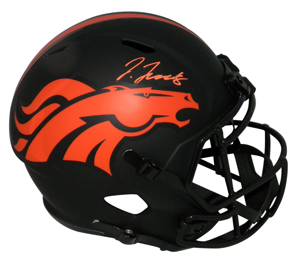 Jerry Jeudy, wide receiver for the Denver Broncos, has hand signed this Broncos Riddell Speed Eclipse full-size replica helmet at a private signing. This item comes with a certificate of authenticity (COA) from Beckett Authentication Services and was signed in the presence of one of their representatives. You will receive a serial-numbered COA along with a matching serial-numbered sticker on the helmet. The authenticity can be verified online by entering the serial number.Item pictured may not be the exact item you will receive. It will be similar quality, and we guarantee your satisfaction.