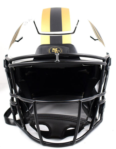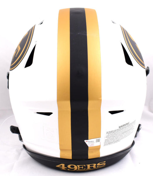Jerry Rice Autographed San Francisco 49ers F/S Lunar Speed Flex Helmet- Fanatics *Black This is a hand autograph of Jerry Rice of the San Francisco 49ers on a Full Size Lunar Speed Flex Authentic Helmet. This item has a Fanatics Authentication, which comes with a Fanatics numbered sticker hologram and a QR code for verification. You can view this item on the Beckett Authentication website. It was signed either at a public autograph appearance or a private signing. This is a stock photo of the item. Although you may not receive this exact item, the item you receive is virtually identical and brand new in great shape.