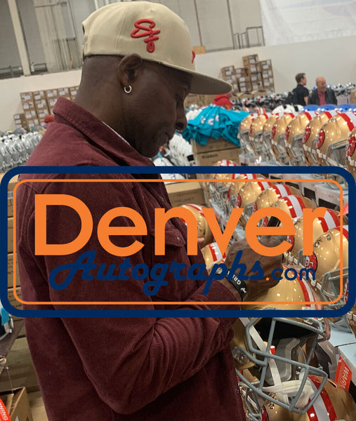 The number in the listing title is just an inventory sku for our records and is not the authentication number. The item pictured is a stock photo unless otherwise noted. This is a San Francsico 49ers Full Size Replica Throwback 1964-1995 Helmet that was personally autographed by Jerry Rice. Includes a certificate of authenticity from Fanatics Authentication (FAN) and Denver Autographs.
