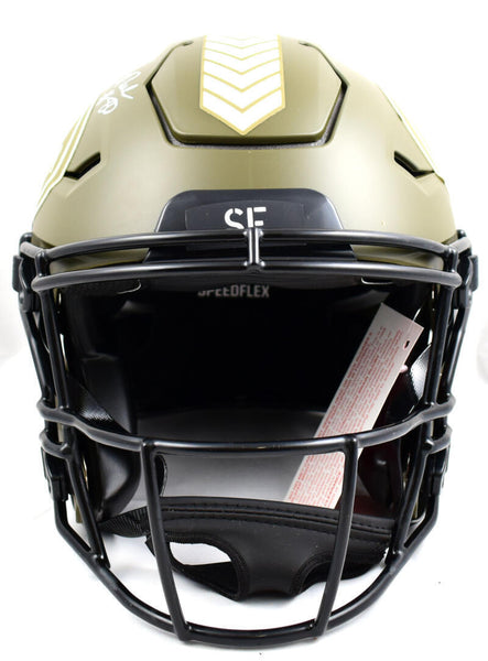 Jerry Rice Autographed San Francisco 49ers F/S Salute to Service Speed Flex Helmet- Fanatics *White This is a hand autograph of Jerry Rice of the San Francisco 49ers on a Full Size Salute to Service Speed Flex Authentic Helmet. This item has a Fanatics Authentication, which comes with a Fanatics numbered sticker hologram and a QR code for verification. You can view this item on the Beckett Authentication website. It was signed either at a public autograph appearance or a private signing. This is a stock photo of the item. Although you may not receive this exact item, the item you receive is virtually identical and brand new in great shape.