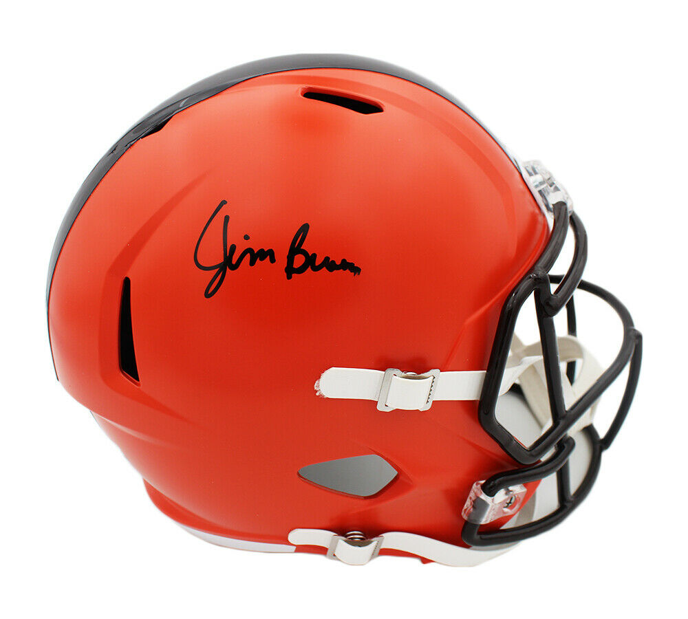 A Cleveland Browns Speed Replica NFL Helmet hand signed by Jim Brown. The item and signature are in excellent condition. Jim is an 8x Pro Bowler, 4x NFL MVP and an NFL Champion. AUTHENTICATION: Your item is tagged with a SmarTag powered by Prova Technology, which gives you digital access to your items authentication records, which includes a proof picture from the signing.
