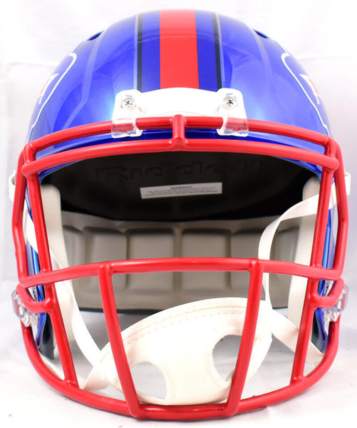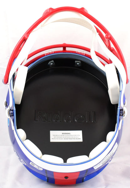 Jim Kelly Autographed Buffalo Bills F/S Flash Speed Helmet-Beckett W Hologram *White This is a hand autograph of Jim Kelly of the Buffalo Bills on a Riddell Football Full Size Flash Speed Replica Helmet. This item has a Beckett Witness Authentication, which comes with a Beckett numbered hologram and a QR code for verification. You can view this item on the Beckett website and it shows when and where the item was signed. It was signed either at a public autograph appearance or a private signing. This is a stock photo of the item. Although you may not receive this exact item, the item you receive is virtually identical and brand new in great shape.