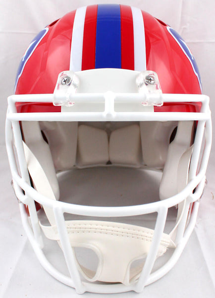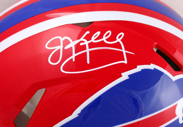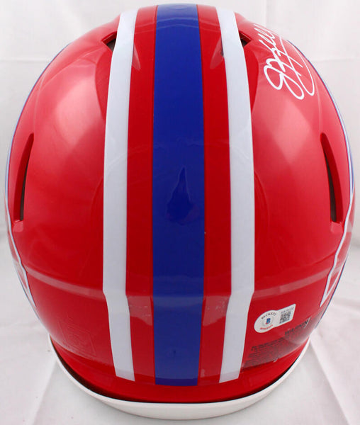 Jim Kelly Autographed Buffalo Bills F/S 87-01 Speed Authentic Helmet-Beckett W Hologram *White This is a hand autograph of Jim Kelly of the Buffalo Bills on a Riddell Football Full Size 87-01 Speed Authentic Helmet. This item has a Beckett Witness Authentication, which comes with a Beckett numbered sticker hologram and a QR code for verification. You can view this item on the Beckett website and it shows when and where the item was signed. It was signed either at a public autograph appearance or a private signing. This is a stock photo of the item. Although you may not receive this exact item, the item you receive is virtually identical and brand new in great shape.
