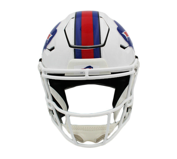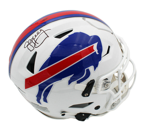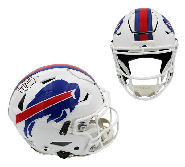 A Buffalo Bills Speed Flex Authentic NFL Helmet hand signed by Jim Kelly. The item and signature are in excellent condition. Jim was drafted into the NFL in 1983 Round:1,Pick:14. Jim is First-team All-Pro (1991). Jim a Second-team All-Pro (1992).Jim 5Pro Bowl (1987,19988,1990-1992). Jim was NFL passing touchdowns leader (1991). Jim is a NFL passer rating leader (1990). Jim was a NFL completion percentage leader (1990).AUTHENTICATION: The item is accompanied by a Certificate of Authenticity, Serial Numbered and Databased Hologram, & Picture of Jim from the Signing