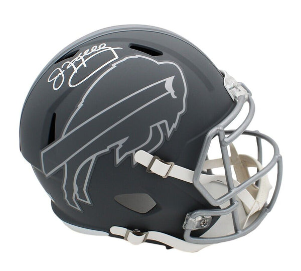 A Buffalo Bills Speed Replica Slate NFL Helmet hand signed by Jim Kelly. The item and signature are in excellent condition. Jim is a former quarterback who played for eleven seasons with the Buffalo Bills. He is a 5x Pro Bowler and was inducted into the Pro Football Hall of Fame in 2002. AUTHENTICATION: Your item is accompanied by a Beckett Serial Numbered and Database Hologram