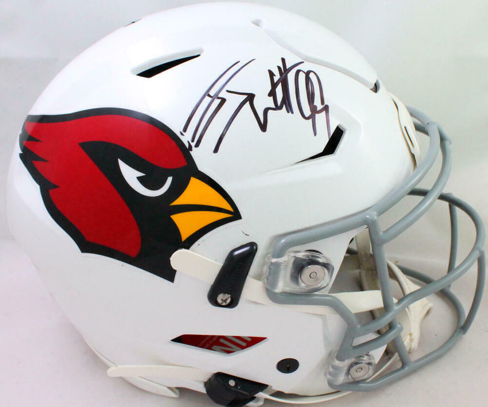 JJ Watt Autographed Arizona Cardinals F/S SpeedFlex Helmet - JSA W Auth *Black This is a hand autograph of JJ Watt of the Arizona Cardinals on a Riddell Football Full Size SpeedFlex Authentic Helmet. This item has a James Spence Witness Protection Authentication, which comes with a numbered sticker and a matching JSA Certificate of Authenticity. You can view this item on the SpenceLOA website, it shows when and where the item was signed. It was signed either at a public autograph appearance or a private signing. This is a stock photo of the item. Although you may not receive this exact item, the item you receive is virtually identical and brand new in great shape.