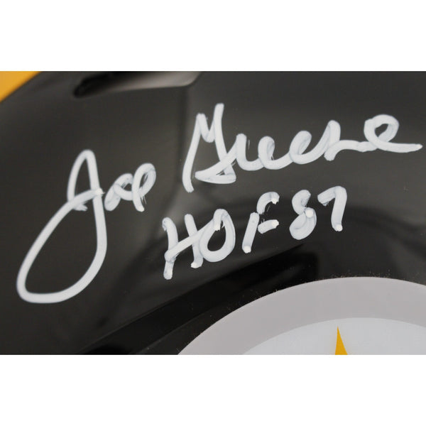 The number in the listing title is just an inventory sku for our records and is not the authentication number. This is a stock photo, unless otherwise noted. This is a Pittsburgh Steelers Full Size Authentic Throwback 1963-1976 Speed Helmet that was personally autographed by Joe Greene, includes "HOF" inscription. Includes a certificate of authenticity from Beckett Authentication Services (BAS) and Denver Autographs.