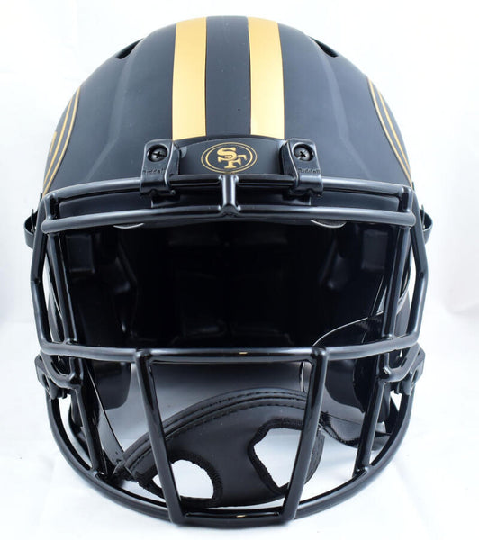 This is a hand autograph of Joe Montana of the San Francisco 49ers on a Riddell Football Full Size Eclipse Speed Authentic Helmet. This item has a Fanatics Authentication, which comes with a numbered sticker hologram and a QR code for verification. You can view this item on the Fanatics Authentication website and it shows when and where the item was signed. It was signed either at a public autograph appearance or a private signing. This is a stock photo of the item. Although you may not receive this exact item, the item you receive is virtually identical and brand new in great shape. We accept Paypal as well as all Major Credit Cards for purchase. We appreciate your interest in our items and we hope that we Joe Montana Autographed San Francisco 49ers F/S Eclipse Speed Authentic Helmet - Fanatics *Gold This is a hand autograph of Joe Montana of the San Francisco 49ers on a Riddell Football Full Size Eclipse Speed Authentic Helmet. This item has a Fanatics Authentication, which comes with a numbered sticker hologram and a QR code for verification. You can view this item on the Fanatics Authentication website and it shows when and where the item was signed. It was signed either at a public autograph appearance or a private signing. This is a stock photo of the item. Although you may not receive this exact item, the item you receive is virtually identical and brand new in great shape.