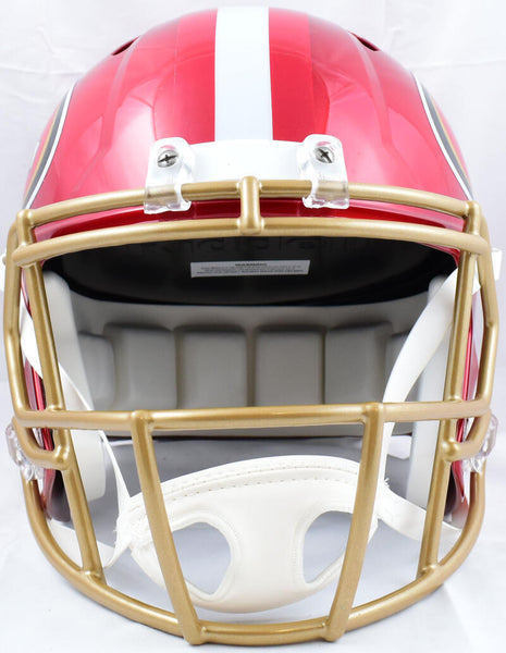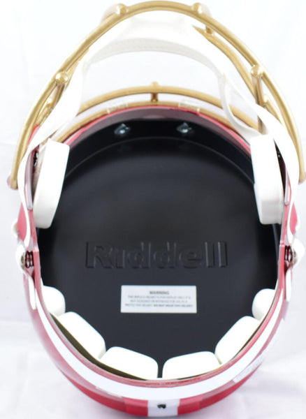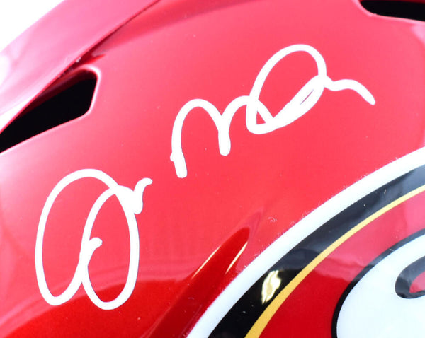 Joe Montana Autographed San Francisco 49ers F/S Flash Speed Helmet - Fanatics *White This is a hand autograph of Joe Montana of the San Francisco 49ers on a Riddell Football Full Size Flash Speed Replica Helmet. This item has a Fanatics Authentication, which comes with a numbered sticker hologram and a QR code for verification. You can view this item on the Fanatics Authentication website and it shows the item was signed. It was signed either at a public autograph appearance or a private signing. This is a stock photo of the item. Although you may not receive this exact item, the item you receive is virtually identical and brand new in great shape.