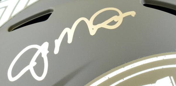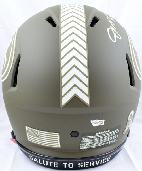 Joe Montana Autographed San Francisco 49ers F/S Salute to Service Speed Authentic Helmet - Fanatics *Gold This is a hand autograph of Joe Montana of the San Francisco 49ers on a Riddell Football Full Size Salute to Service Speed Authentic Helmet. This item has a Fanatics Authentication, which comes with a numbered sticker hologram and a QR code for verification. You can view this item on the Fanatics Authentication website and it shows the item was signed. It was signed either at a public autograph appearance or a private signing. This is a stock photo of the item. Although you may not receive this exact item, the item you receive is virtually identical and brand new in great shape.