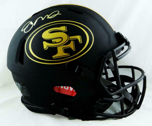Joe Montana Autographed San Francisco 49ers F/S Eclipse Speed Authentic Helmet - Beckett W Auth *Gold This is a hand autograph of Joe Montana of the San Francisco 49ers on a Riddell Football Full Size Eclipse Speed Authentic Helmet. This item has a Beckett Witnessed Authentication, which comes with a numbered and a matching Beckett Certificate of Authenticity. You can view this item on the Beckett Authentication website and it shows when and where the item was signed. It was signed either at a public autograph appearance or a private signing. This is a stock photo of the item. Although you may not receive this exact item, the item you receive is virtually identical and brand new in great shape.