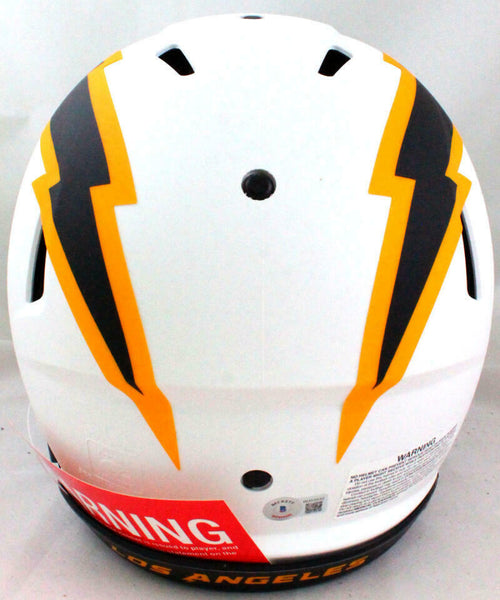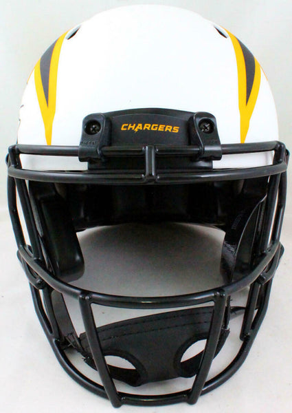 Joey Bosa Autographed LA Chargers F/S Lunar Authentic Helmet- Beckett W *Black This is a Joey Bosa of the Los Angeles Chargers hand autographed Riddell Football Full Size Lunar Speed Authentic Helmet. This item has a Beckett Witnessed Authentication, which comes with a numbered sticker and a matching Beckett Certificate of Authenticity. You can view this item on the Beckett Authentication website and it shows when and where the item was signed. It was signed either at a public autograph appearance or a private signing. This is a stock photo of the item. Although you may not receive this exact item, the item you receive is virtually identical, brand new, and in great shape.