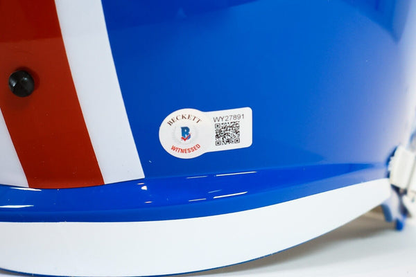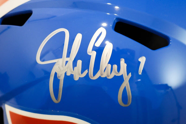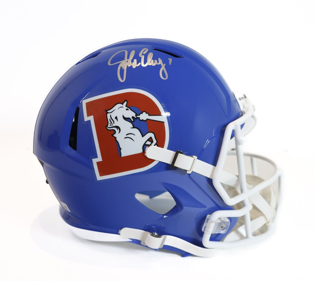 Own a piece of NFL history with this authentic John Elway autographed Denver Broncos replica helmet. This helmet features the iconic "D" logo and bears a Beckett certificate of authenticity, ensuring its legitimacy. A must-have for any true Denver Broncos fan and the perfect addition to any sports memorabilia collection.