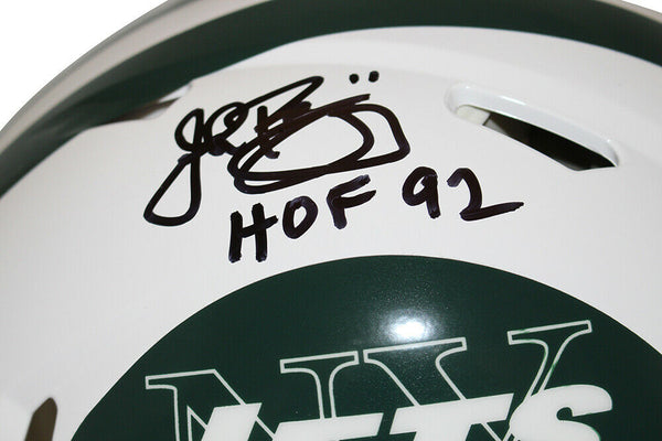 John Riggins Signed New York Jets Authentic 1965-77 Speed Helmet Beckett 34939 The number in the listing title is just an inventory sku for our records and is not the authentication number. The item pictured is a stock photo unless otherwise noted. This is a New York Jets full size 1965-77 authentic speed helmet that was personally autographed by John Riggins with HOF inscription. Includes a certificate of authenticity from Beckett Authentication Services (BAS) and Denver Autographs.