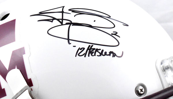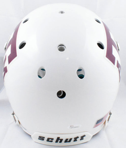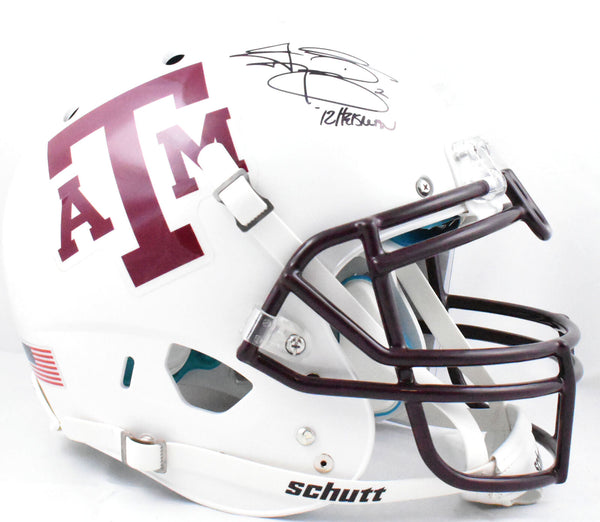 This helmet does NOT come in a Schutt box. Comes in a standard cardboard box. See pictures for further details. This is a Johnny Manziel of the Texas A&M Aggies hand autographed Schutt Football Authentic Helmet. Inscribed Heisman. This item has a JSA Witnessed Authentication, which comes with a numbered hologram and a matching COA. You can view this item on the JSA Authentication website. It was signed either at a public autograph appearance or a private signing. This photo is the exact item that you will be receiving. This helmet does NOT come in a Riddell box. Comes in a standard cardboard box. See pictures for further details. This helmet does NOT come in a Schutt box. Comes in a standard cardboard box. See pictures for further details. This is a Johnny Manziel of the Texas A&M Aggies hand autographed Schutt Football Authentic Helmet. Inscribed Heisman. This item has a JSA Witnessed Authentication, which comes with a numbered hologram and a matching COA. You can view this item on the JSA Authentication website. It was signed either at a public autograph appearance or a private signing. This photo is the exact item that you will be receiving. This helmet does NOT come in a Riddell box. Comes in a standard cardboard box. See pictures for further details.