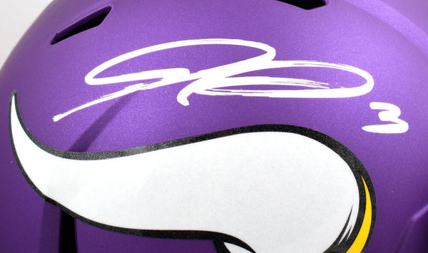 Jordan Addison Autographed Minnesota Vikings F/S Speed Helmet- Beckett W Hologram *Silver This is a hand autograph of Jordan Addison of the Minnesota Vikings on a Riddell Football Full Size Speed Helmet. This item has a Beckett Witnessed Authentication, which comes with a numbered hologram and a QR code for verification. You can view this item on the Beckett Authentication website and it shows when and where the item was signed. It was signed either at a public autograph appearance or a private signing. This is a stock photo of the item. Although you may not receive this exact item, the item you receive is virtually identical and brand new in great shape.