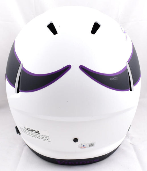 Jordan Addison Autographed Minnesota Vikings F/S Lunar Speed Helmet- Beckett W Hologram *Purple This is a hand autograph of Jordan Addison of the Minnesota Vikings on a Riddell Football Full Size Lunar Speed Helmet. This item has a Beckett Witnessed Authentication, which comes with a numbered sticker hologram and a QR code for verification. You can view this item on the Beckett Authentication website and it shows when and where the item was signed. It was signed either at a public autograph appearance or a private signing. This is a stock photo of the item. Although you may not receive this exact item, the item you receive is virtually identical and brand new in great shape.
