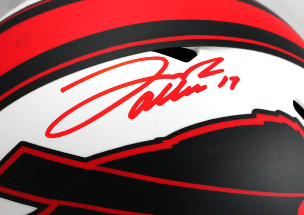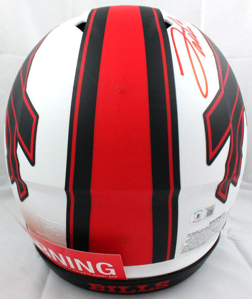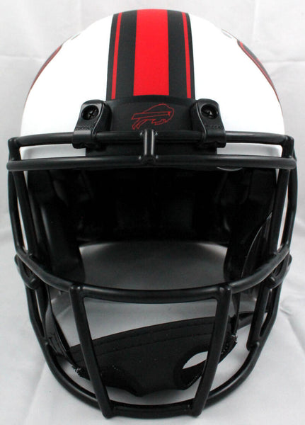 Josh Allen Autographed Buffalo Bills Lunar Speed Authentic Helmet-Beckett W Hologram *Red This is a Josh Allen of the Buffalo Bills hand autographed Riddell Football Lunar Speed full size authentic helmet. This item has a Beckett Witnessed Authentication, which comes with a numbered sticker hologram and a QR code for verification. You can view this item on the Beckett Authentication website. It was signed either at a public autograph appearance or a private signing. This is a stock photo of the item. Although you may not receive this exact item, the item you receive is virtually identical, brand new, and in great shape.