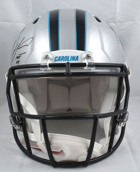 This is a Julius Peppers of the Carolina Panthers hand autographed Riddell football full size Speed Authentic helmet. Inscribed HOF. This item has a Beckett Witnessed Authentication, which comes with a numbered sticker hologram and a QR code for verification. You can view this item on the Beckett Authentication website and it shows when and where the item was signed. It was signed either at a public autograph appearance or a private signing. This is a stock photo of the item. Although you may not receive this exact item, the item you receive is virtually identical, brand new, and in great shape. This is a Julius Peppers of the Carolina Panthers hand autographed Riddell football full size Speed Authentic helmet. Inscribed HOF. This item has a Beckett Witnessed Authentication, which comes with a numbered sticker hologram and a QR code for verification. You can view this item on the Beckett Authentication website and it shows when and where the item was signed. It was signed either at a public autograph appearance or a private signing. This is a stock photo of the item. Although you may not receive this exact item, the item you receive is virtually identical, brand new, and in great shape.