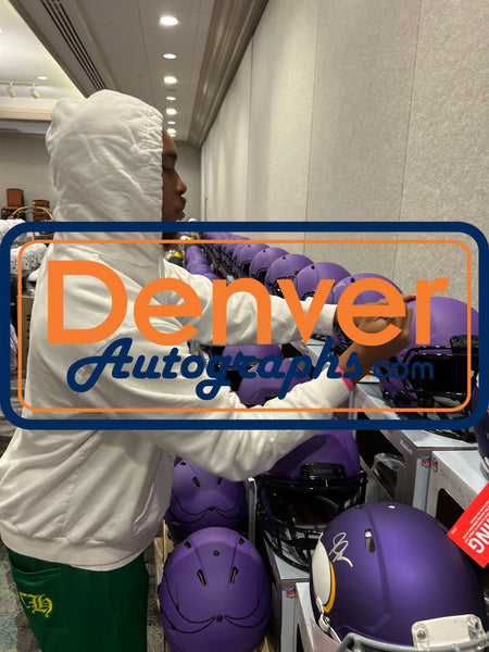 The number in the listing title is just an inventory sku for our records and is not the authentication number. The item pictured is a stock photo unless otherwise noted. This is a Minnesota Vikings Full Size Authentic Helmet that was personally autographed by Justin Jefferson. Includes a certificate of authenticity from Beckett Authentication Services (BAS) and Denver Autographs. FREE SHIPPING within the USA on orders over $10!