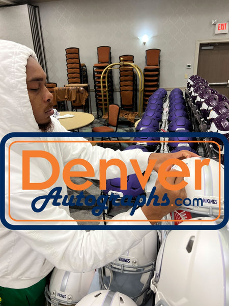 The number in the listing title is just an inventory sku for our records and is not the authentication number. The item pictured is a stock photo unless otherwise noted. This is a Minnesota Vikings Full Size Authentic 2024 Alternate Helmet that was personally autographed by Justin Jefferson includes "Hit the Griddy" inscription. Includes a certificate of authenticity from Beckett Authentication Services (BAS) and Denver Autographs. FREE SHIPPING within the USA on orders over $10!