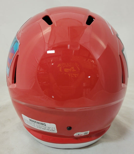 KADARIUS TONEY AUTOGRAPHED KANSAS CITY CHIEFS FULL SIZE SUPER BOWL LOGO SPEED REPLICA HELMET BECKETT QR CODE COATHIS MEANS THE HELMET WAS SIGNED WITH A BECKETT REPRESENTATIVE PRESENT SO YOU CAN BE 100% CERTAIN ITS THE REAL THING.