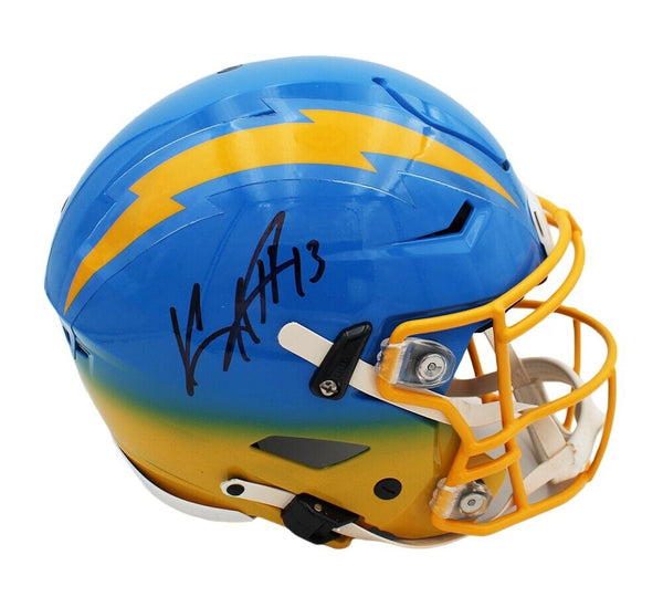 A Los Angeles Chargers Speed Flex Authentic Custom NFL Helmet hand signed by Keenan Allen. The item and signature are in excellent condition. Keenan was drafted into the NFL in 2013 by the Chargers. He was NFL Comeback Player of the Year in 2017 and a 6x Pro Bowler. AUTHENTICATION: The item is accompanied by a Certificate of Authenticity - Serial Numbered & Databased Hologram - Picture of Keenan from the signing