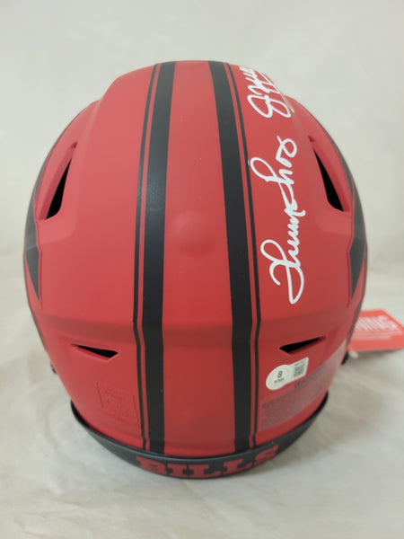 JIM KELLY, THURMAN THOMAS AND ANDRE REED TRIPLE AUTOGRAPHED BUFFALO BILLS RAVE SPEEDFLEX AUTHENTIC HELMETBECKETT QR CODE HOLOGRAM COATHIS MEANS THE HELMET WAS SIGNED WITH A BECKETT REPRESENTATIVE PRESENT SO YOU CAN BE 100% CERTAIN ITS THE REAL THING.