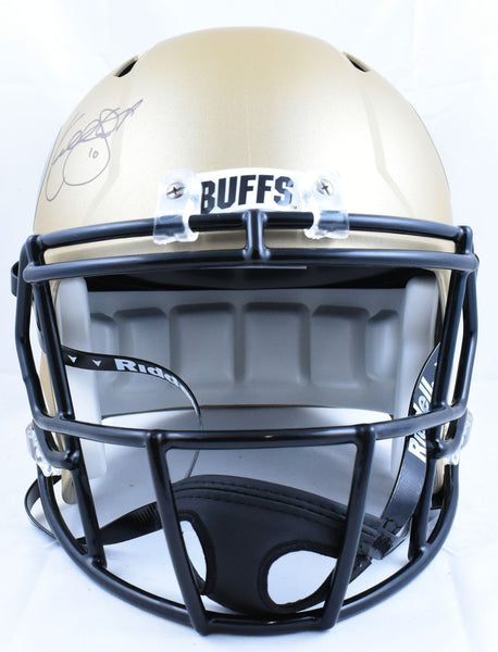 This is a Kordell Stewart and Michael Westbrook of the Colorado Buffaloes Autographed Riddell football full size Speed Replica helmet. This item has a Beckett Witnessed Authentication, which comes with a numbered hologram and a QR code for verification. You can view this item on the Beckett Authentication website and it shows when and where the item was signed. It was signed either at a public autograph appearance or a private signing. This is a stock photo of the item. Although you may not receive this exact item, the item you receive is virtually identical, brand new, and in great shape. *Autograph location may vary* This is a Kordell Stewart and Michael Westbrook of the Colorado Buffaloes Autographed Riddell football full size Speed Replica helmet. This item has a Beckett Witnessed Authentication, which comes with a numbered hologram and a QR code for verification. You can view this item on the Beckett Authentication website and it shows when and where the item was signed. It was signed either at a public autograph appearance or a private signing. This is a stock photo of the item. Although you may not receive this exact item, the item you receive is virtually identical, brand new, and in great shape. *Autograph location may vary*