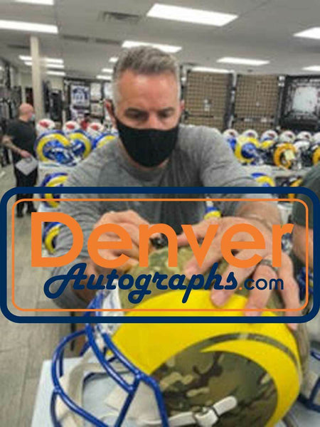 Kurt Warner Autographed St Louis Rams Authentic Camo Speed Helmet BAS 34244 The number in the listing title is just an inventory sku for our records and is not the authentication number. This is a St Louis Rams full size authentic camo speed helmet that was personally autographed by Kurt Warner. Includes a certificate of authenticity from Beckett Authentication Services (BAS) and Denver Autographs.