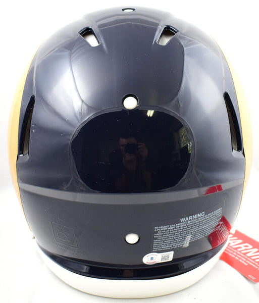 Kurt Warner Signed Rams 00-16 Speed Authentic F/S Helmet-Beckett W Hologram *Black *SMEARED You will receive the helmet shown. This is a Kurt Warner of the St. Louis Rams hand autographed Riddell Football 00-16 Full Size Speed Authentic Helmet.This item has a Beckett Witnessed Authentication, which comes with a numbered sticker hologram and a QR code for verification. You can view this item on the Beckett Authentication website, it shows when and where the item was signed. It was signed either at a public autograph appearance or a private signing. Although you may not receive this exact item, the item you receive is virtually identical, brand new, and in great shape.