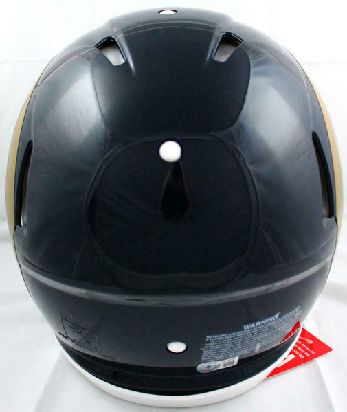 Kurt Warner Signed St. Louis Rams 00-16 Speed Authentic F/S Helmet-Beckett W Hologram *Black This is a Kurt Warner of the St. Louis Rams hand autographed Riddell Football 00-16 Full Size Speed Authentic Helmet.This item has a Beckett Witnessed Authentication, which comes with a numbered sticker hologram and a QR code for verification. You can view this item on the Beckett Authentication website, it shows when and where the item was signed. It was signed either at a public autograph appearance or a private signing. This is a stock photo of the item. Although you may not receive this exact item, the item you receive is virtually identical, brand new, and in great shape.