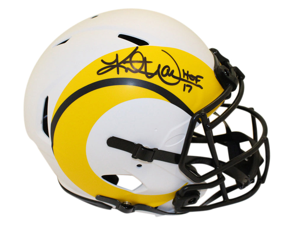 Kurt Warner Signed St Louis Rams Authentic Lunar Helmet HOF Beckett 36336 The number in the listing title is just an inventory sku for our records and is not the authentication number. The item pictured is a stock photo unless otherwise noted. This is a St Louis Rams full size authentic lunar speed helmet that was personally autographed by Kurt Warner. Includes a certificate of authenticity from Beckett Authentication Services (BAS) and Denver Autographs.