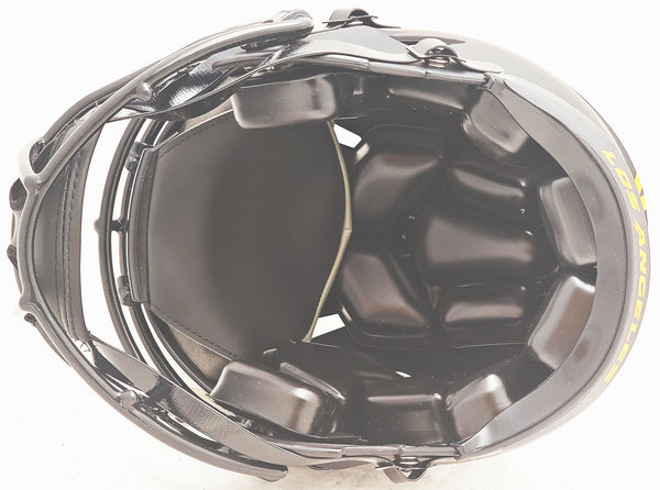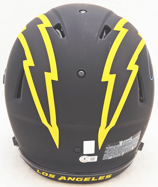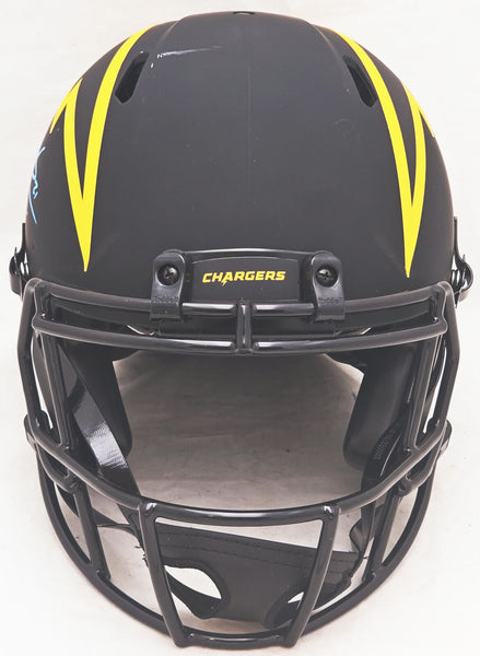 This is a San Diego Chargers Eclipse Black Full Size Authentic Speed Helmet that has been hand signed by LaDainian Tomlinson. The Eclipse helmets are delicate and may have some marks or scratches on them. This item was inscribed "HOF 17." This item has been certified authentic by Beckett Authentication (BAS) and comes with their tamper-proof QR Code sticker that can be verified on beckett-authentication.com.