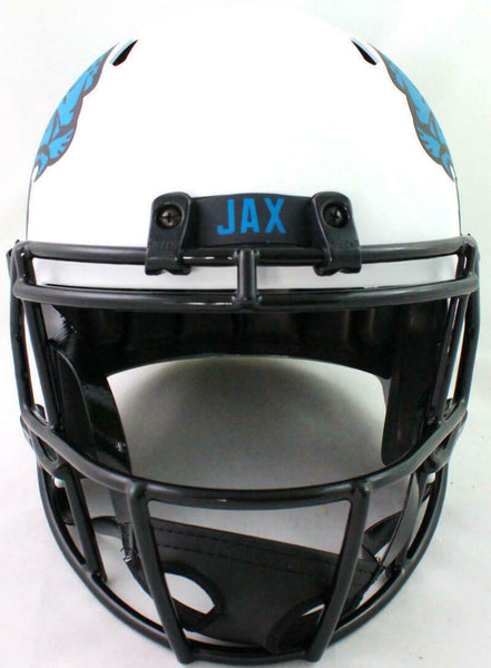 Laviska Shenault Autographed Jaguars Lunar Speed F/S Helmet- Beckett W *Black This is a Laviska Shenault of the Jacksonville Jaguars hand autographed Riddell football Lunar Speed full size helmet. This item has a Beckett Witnessed Authentication, which comes with a numbered and a matching Beckett Certificate of Authenticity. You can view this item on the Beckett Authentication website, it shows when and where the item was signed. It was signed either at a public autograph appearance or a private signing. This is a stock photo of the item. Although you may not receive this exact item, the item you receive is virtually identical, brand new, and in great shape.