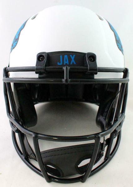 Laviska Shenault Signed Jaguars Authentic Lunar Speed FS Helmet- Beckett W*Black This is a Laviska Shenault of the Jacksonville Jaguars hand autographed Riddell football Authentic Lunar Speed full size helmet. This item has a Beckett Witnessed Authentication, which comes with a numbered and a matching Beckett Certificate of Authenticity. You can view this item on the Beckett Authentication website, it shows when and where the item was signed. It was signed either at a public autograph appearance or a private signing. This is a stock photo of the item. Although you may not receive this exact item, the item you receive is virtually identical, brand new, and in great shape.