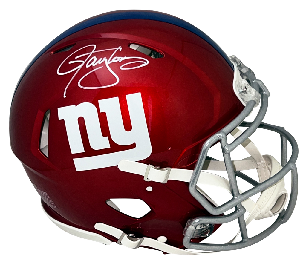 Lawrence Taylor, former Hall of Fame linebacker for the New York Giants, has hand signed this Giants Riddell Speed full-size authentic helmet. This helmet is fully padded inside like the players wear on the field. This item is authenticated by Beckett Authentication Services and was signed in the presence of one of their representatives. Their tamper-evident hologram featuring a QR code and serial number is on the item. The authenticity can be verified online by entering the serial number or scanning the QR code.Item pictured may not be the exact item you will receive. It will be similar quality, and we guarantee your satisfaction.
