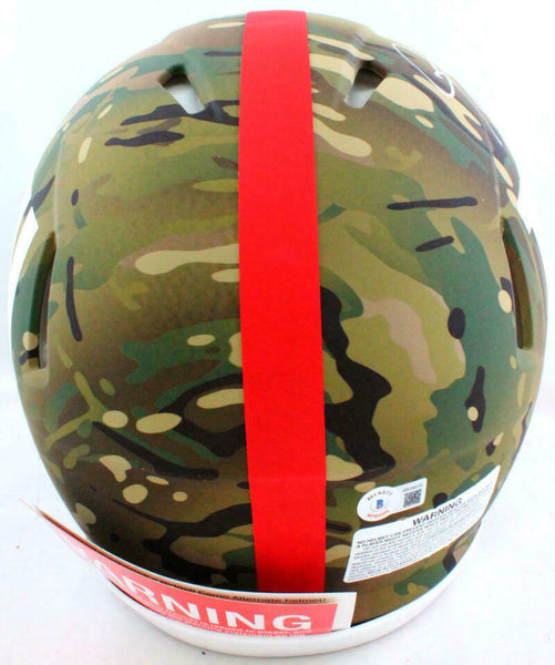 Lawrence Taylor Signed NY Giants Authentic Camo F/S Helmet w/ HOF- Beckett W *White This is a Lawrence Taylor of the New York Giants hand autographed Riddell Football Camo Speed Full Size Authentic Helmet inscribed with "HOF". This item has a Beckett Witnessed Authentication, which comes with a numbered and a matching Beckett Certificate of Authenticity. You can view this item on the Beckett Authentication website and it shows when and where the item was signed. It was signed either at a public autograph appearance or a private signing. This is a stock photo of the item. Although you may not receive this exact item, the item you receive is virtually identical, brand new, and in great shape.