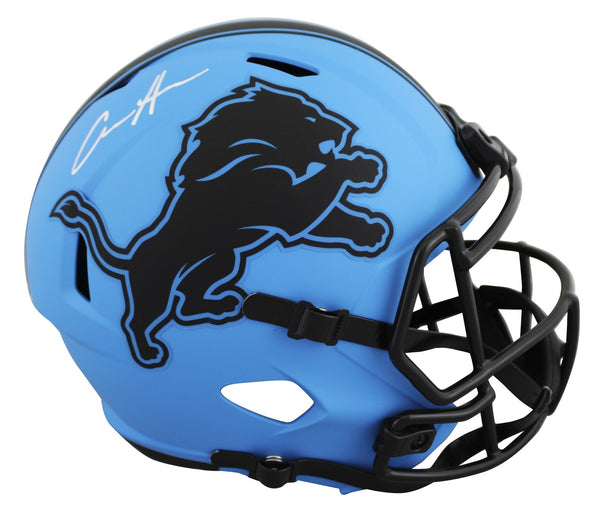 This Autographed Alternate Rave Riddell Full Size Speed Rep Helmet has been Personally Signed by Aidan Hutchinson of the Detroit Lions. This item is 100% Authentic to include a hologram by Beckett Authentication Services. This item will come with an affixed Beckett Authentication Services (BAS) authentication sticker, which includes a scannable QR code to verify authenticity. Please note that Beckett no longer provides serial-numbered COA cards, and the attached BAS sticker will serve as the complete authentication for this item. This is a BAS Witnessed Protection Program item which means a Beckett Authentication Service representative was present when this item was being signed. We conducted an autograph signing with Aidan Hutchinson where multiples of the same item were signed. While the photographs are representative of this item, the size, placement and strength of the signature may vary. Each item is hand signed, therefore, each autograph is unique. This item can be verified through BAS Witnessed.