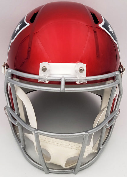 This is a New England Patriots Flash Red Full Size Replica Speed Helmet that has been hand signed by Mac Jones. The Flash helmets are very delicate and often have some marks or scratches on them. This item has been certified authentic by Beckett Authentication (BAS) and comes with their tamper-proof QR Code sticker that can be verified on the Beckett-authentication.com.
