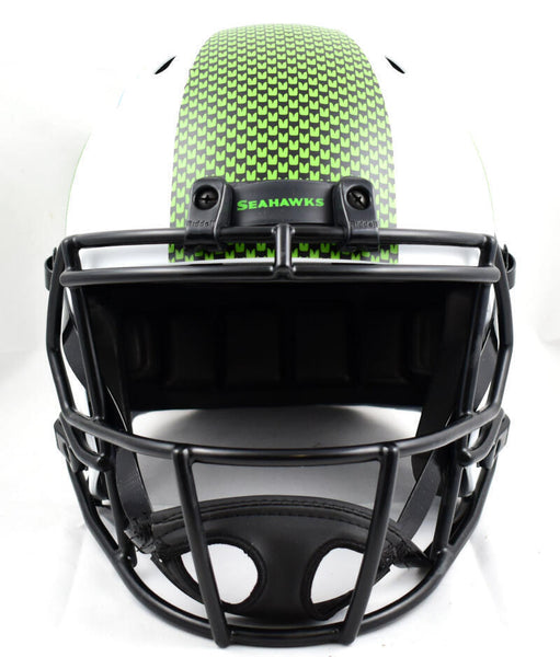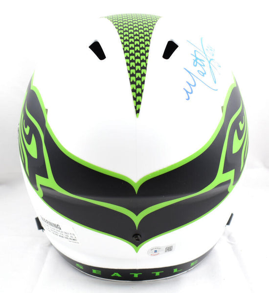 Matt Hasselbeck Autographed Seattle Seahawks Lunar Speed F/S Helmet- Beckett W Hologram *Blue This is a Matt Hasselbeck of the Seattle Seahawks hand autographed Riddell Football Lunar Speed Full Size Replica Helmet. This item has a Beckett Witnessed Authentication, which comes with a numbered hologram and a QR code for verification. You can view this item on the Beckett Authentication website, it shows when and where the item was signed. It was signed either at a public autograph appearance or a private signing. This is a stock photo of the item. Although you may not receive this exact item, the item you receive is virtually identical, brand new, and in great shape.