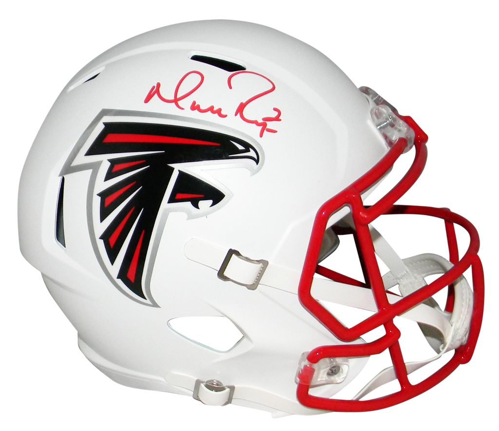 Matt Ryan, star quarterback for the Atlanta Falcons, has hand signed this Falcons Riddell Speed Flat White full-size replica helmet at a private signing. This item comes with a certificate of authenticity (COA) from Beckett Authentication Services and was signed in the presence of one of their representatives. You will receive a serial-numbered COA along with a matching serial-numbered sticker on the helmet. The authenticity can be verified online by entering the serial number.Item pictured may not be the exact item you will receive. It will be similar quality, and we guarantee your satisfaction.