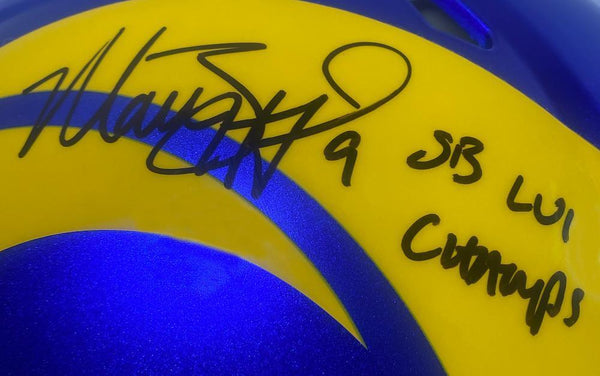 This los angeles rams super bowl lvi champs logo custom visor authentic speed helmet has been personally hand-signed by matthew stafford with the added inscription "sb lvi champs." this helmet also includes the official super bowl lvi logo on the non-signature side of the helmet. it is officially licensed by the national football league and comes with an individually numbered, tamper-evident hologram from fanatics authentic. to ensure authenticity, the hologram can be reviewed online. this process helps to ensure that the product purchased is authentic and eliminates any possibility of duplication or fraud.the autograph includes an official fanatics hologram and matching coa for authenticity purposes.comes with a tamper-evident hologram from fanatics authenticatedofficially licensed by the nfl money back guarantee! if for any reason you are not completely satisfied with the quality or authenticity of your purchase, we will gladly give you a full refund or exchange, whichever you prefer up to 30 days after purchase. please feel free to e-mail us with any questions. good luck bidding!!! authenticator pre-certified authenticator: fanatics authenticated history of item: matthew stafford has signed this item in the presence of a representative from fanatics. describe how you came to possess this item: super sports center is a fully authorized dealer for upper deck authenticated as well as mounted memories and steiner sports. other information about you and / or the item: super sports center strives to deliver the most authentic in sports memorabilia from trusted companies like mounted memories, steiner sports and upper deck authenticated. if it exists, we can find it for you!